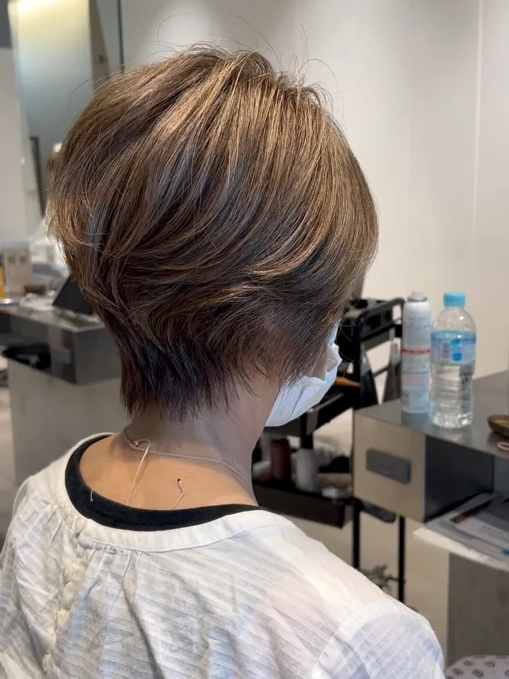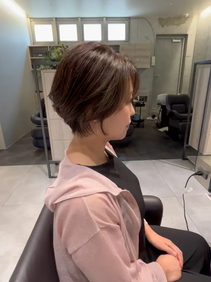毎日の手入れが楽になるだけでなく、品のある印象を与えるショートボブは、ビジネスシーンからプライベートまで、あらゆる場面で自信を持って過ごせる美容室のスタイルです。お客様が輝ける日常を東海市でサポートいたします。